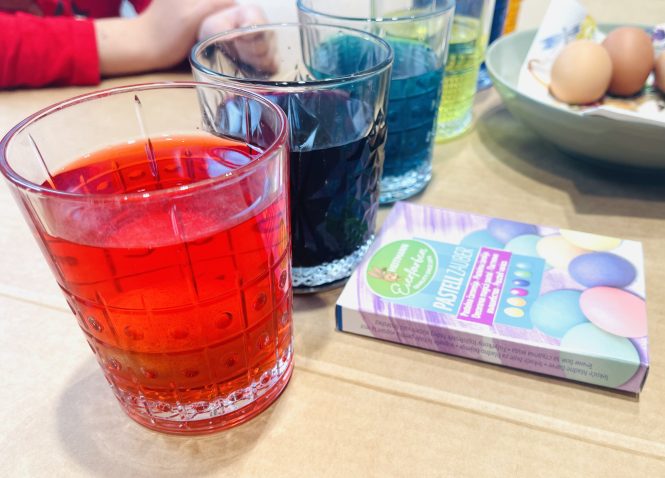 Z barvami za jajca Heitmann Eierfarben Pastell Zauber smo ustvarili mehke, romantične odtenke letošnjih pirhov. Ko so se pirhi posušili, smo jih še dodatno okrasili s prikupnimi nalepkami PanGraf, ki z zlatimi robovi in igrivimi motivi zajčkov ter cvetlic dodajo piko na i.
