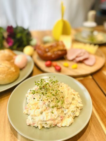 Pri nas doma smo vsi nori na francosko solato, zato bo naša letošnja praznična poslastica zagotovo francoska solata chefa Uroša Štefelina. Za lepši izgled jo lahko okrasite s svežimi kalčki. Bolj drzni kupci imajo na voljo tudi francosko solato z dimljeno postrvjo, ki jo je prav tako ustvaril Štefelin.